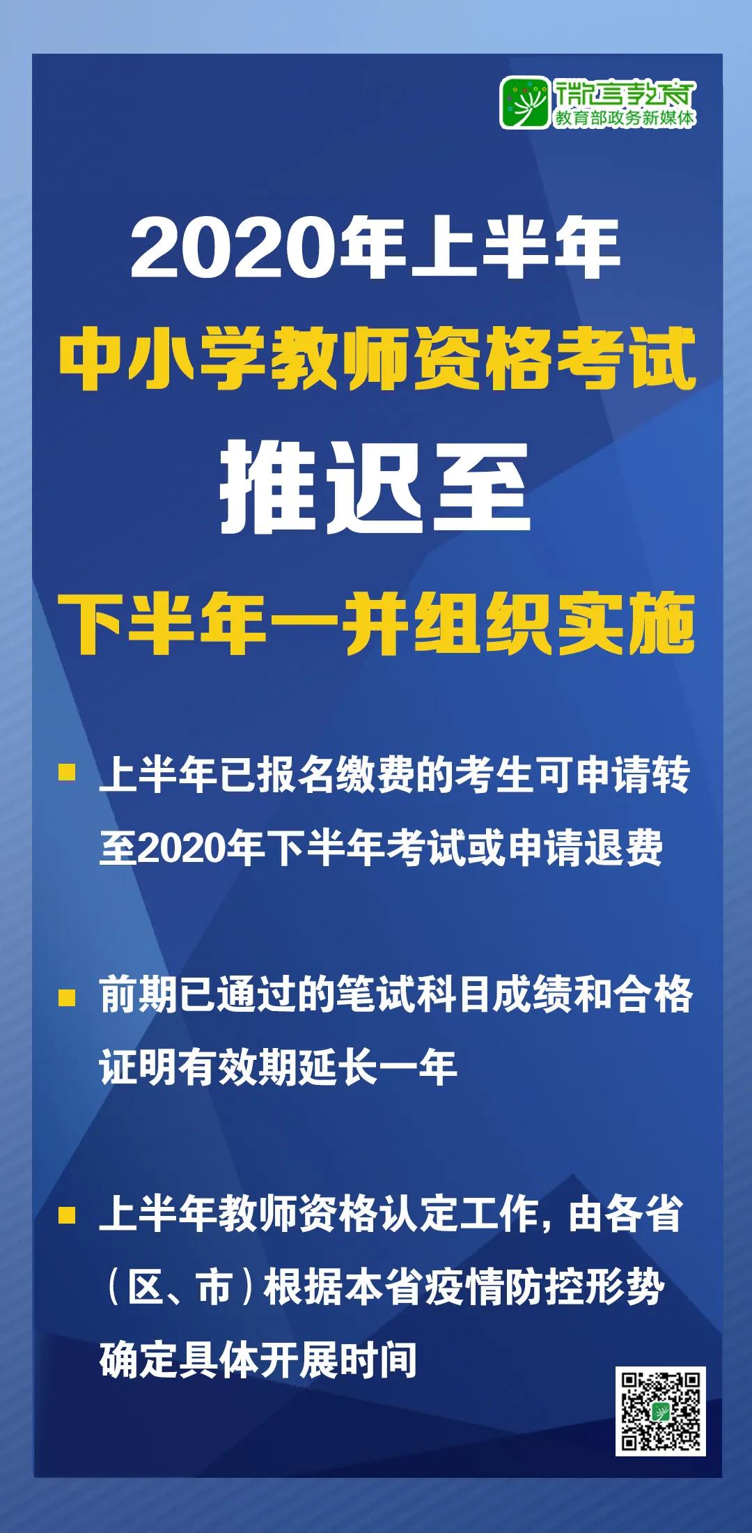 关于将2020年上半年中小学教师资格考试推迟至下半年一并组织实施的公告